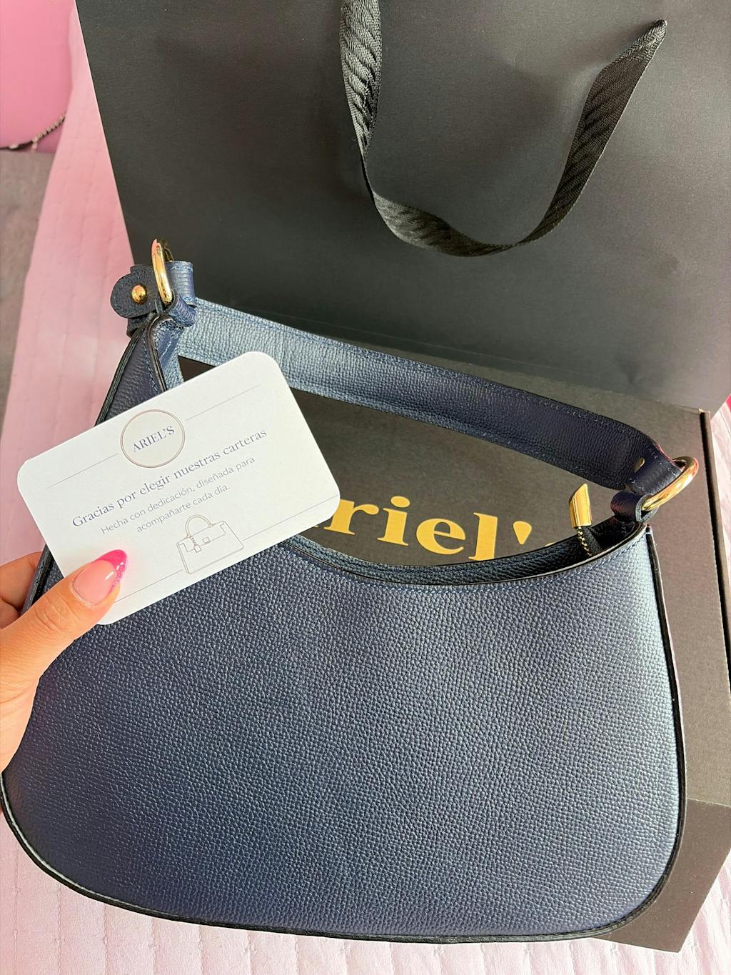 El tono azul profundo de la Cartera de Cuero Graneado Hobo - Azul entrega personalidad sin perder sofisticación. Su textura graneada realza la calidad del cuero natural, aportando resistencia y carácter, además de mejorar su durabilidad frente al uso constante. Este acabado no solo es estético, sino también funcional, ya que ayuda a disimular marcas propias del uso diario.